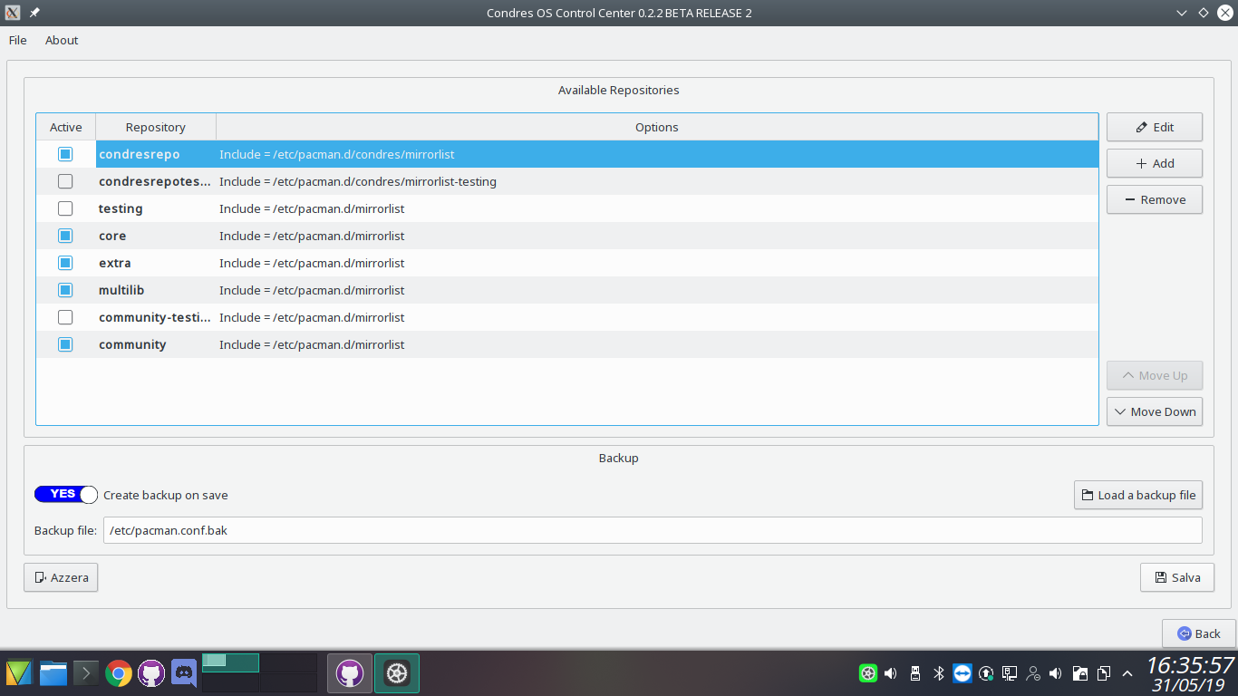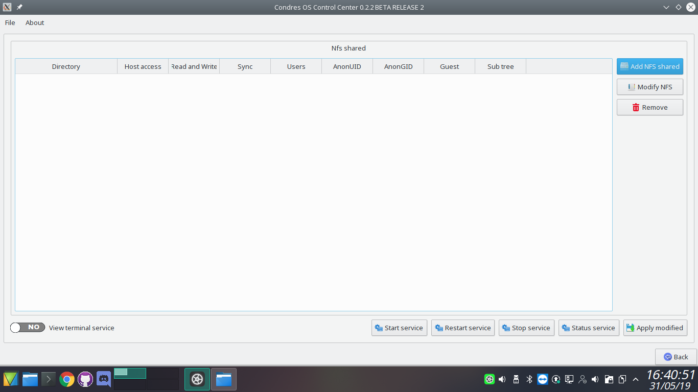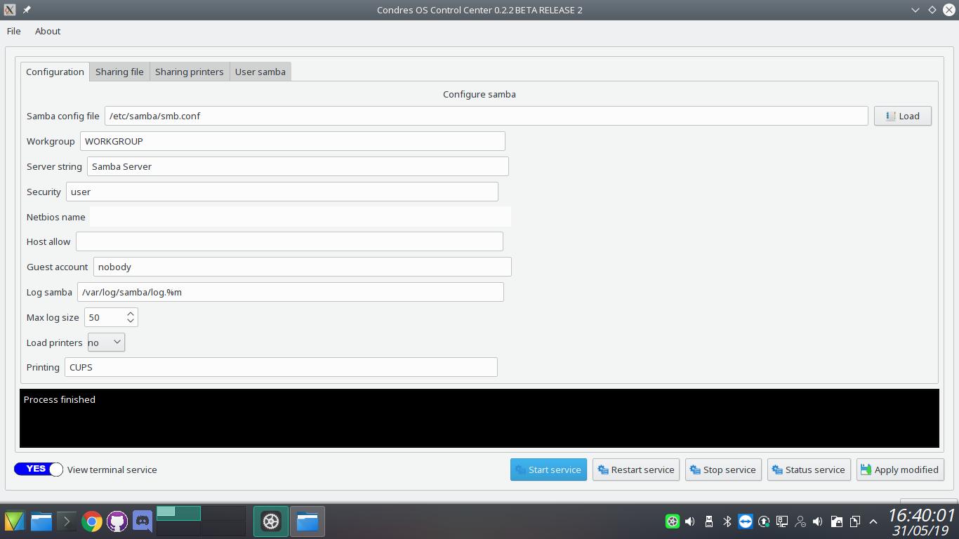 Condres Control Center handles install packages, software update, editor repository, cleaner the cache,view log of installation, keyboard configuration, hardware configuration, sharing samba and nfs, accont user, language, date and time.